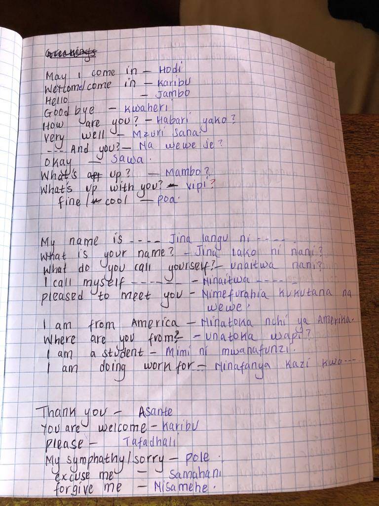 Links: Einblick in eine Seite aus meinem Kiswahili-Heft.
